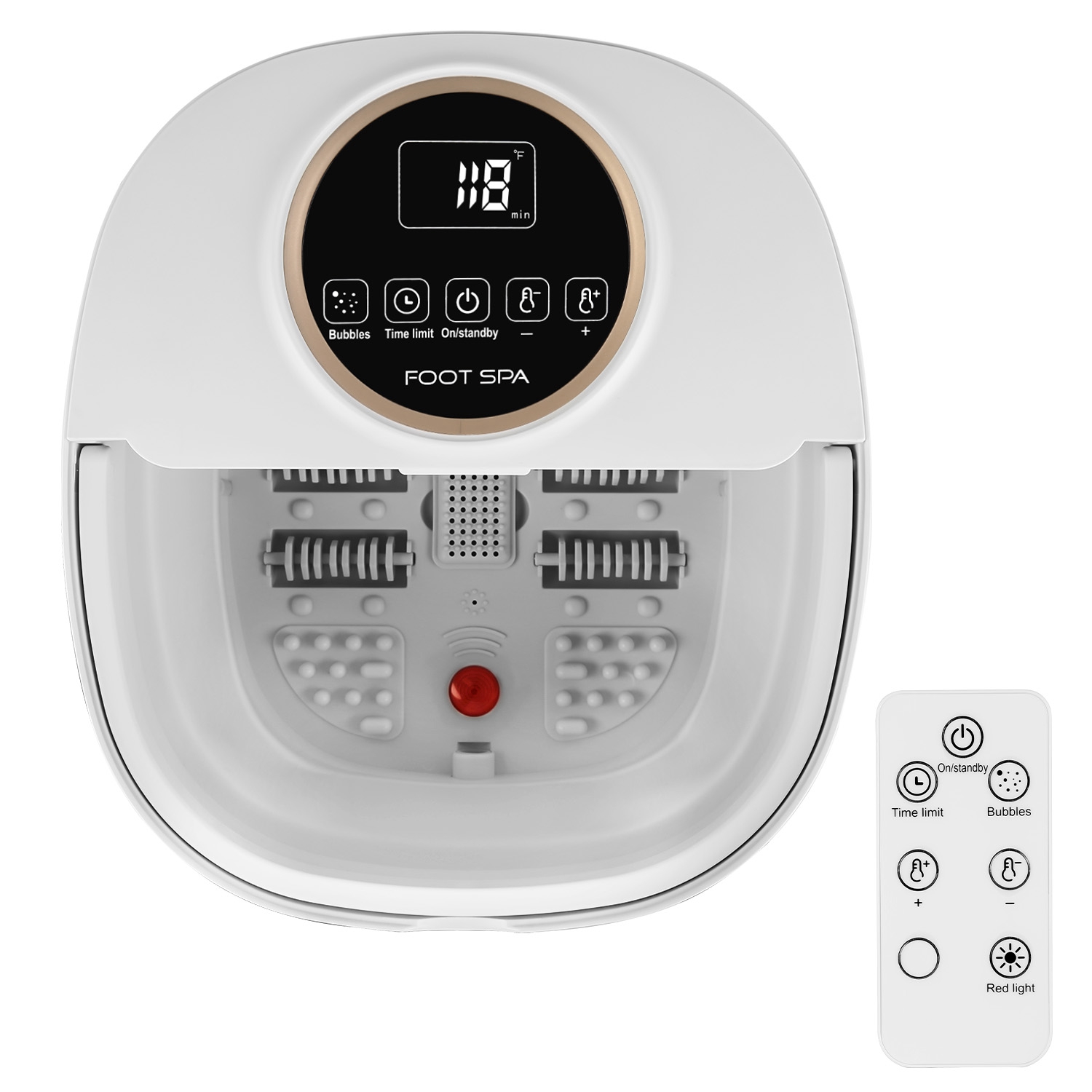 Function: Heating + Surfing Bubbles + Manual Foot Massage + Timer + Display